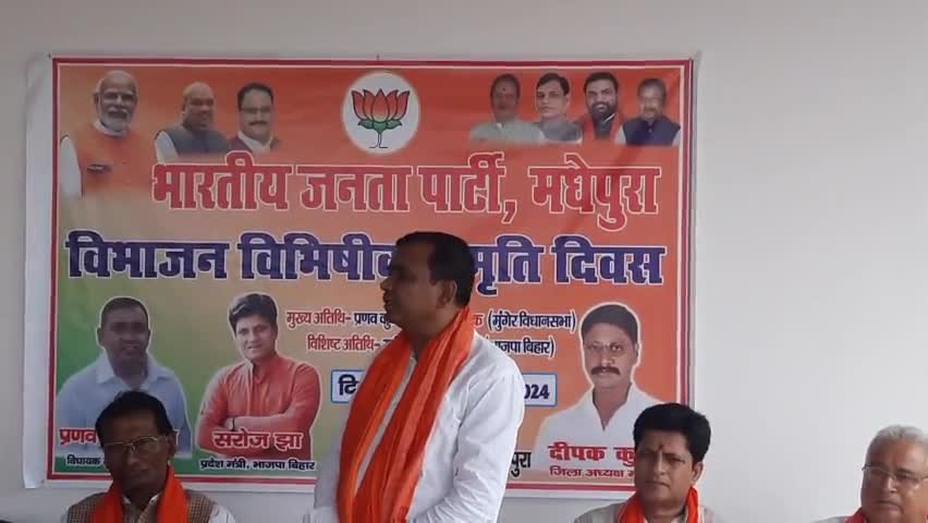 bjp मधेपुरा द्वारा आयोजित विभाजन विभीषिका कार्यक्रम को संबोधित करते मुंगेर के #विधायक श्री #प्रणव यादव।