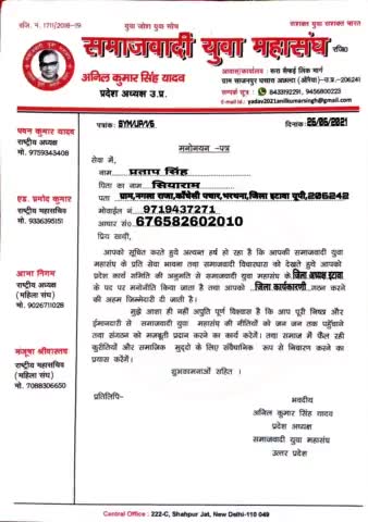 #युवा महासंघ से जुड़ने के लिए संपर्क करें 8433192291 प्रदेश अध्यक्ष अनिल ने बनाया इटावा जिलाअध्यक्ष बनाए गए प्रताप यादव