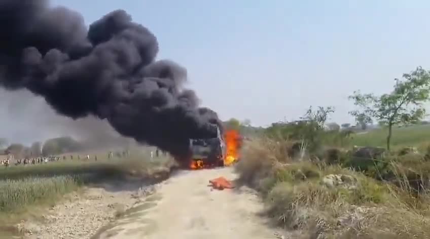 गाजीपुर में बड़ी घटना, हाइटेंशन तार की चपेट में आने से आग का गोला बनी बरातियों से भरी बस