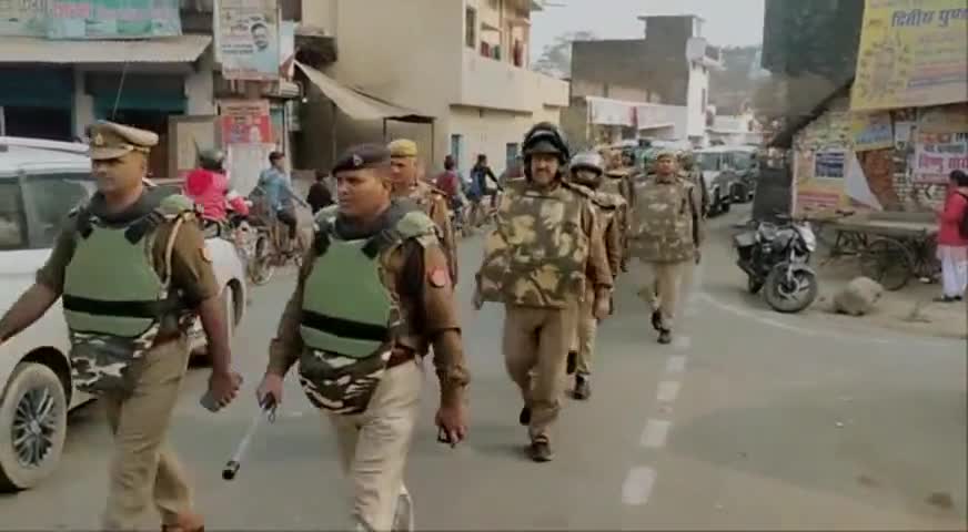 शोहरतगढ़: शोहरतगढ़ पुलिस अधीक्षक द्वारा कस्बे में कानून व शांति-व्यवस्था बनाये रखने हेतु किया गया फ्लैग मार्च
