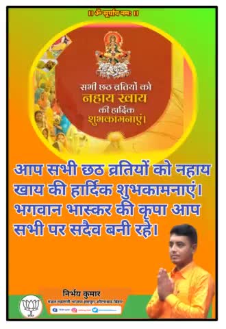 आप सभी को छठ पूजा के प्रथम दिवस नहाय खाय की हार्दिक शुभकामनाएं। #happychhathpooja