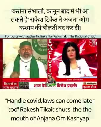 राकेश टिकैत ने की अंजना ओम कश्यप की बोलती बंद ,कोरोना बड़ा या कानून।।।