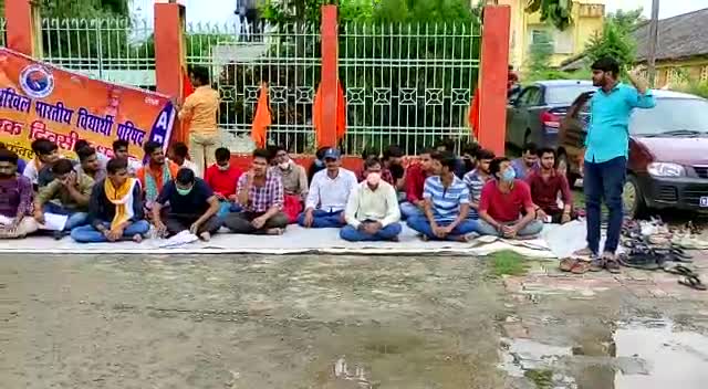 वीर कुंवर सिंह विश्वविद्यालय परिसर मे विधार्थी परिषद के कार्यकर्ता ने दिया एकदिवसीय धारना