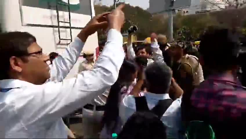 दिल्ली के मुख्यमंत्री Arvind Kejriwal गिरफ्तारी के खिलाफ प्रदर्शन करते हुए
