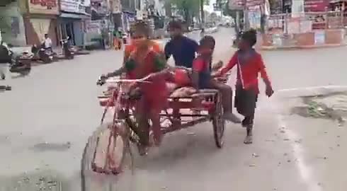 यूपी के संत कबीरनगर में दबंगो की बर्बरता से अधमरे गणेश को उसका नाबालिक बेटा ठेले पर अस्पताल ले जाते हुए l