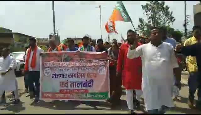 छत्तीसगढ़ भाजयुमो के आह्वान पर भारतीय जनता युवा मोर्चा बेमेतरा जिला के नेतृत्व में प्रदेश के युवाओं को रोजगार एवं बेरोजगारी भत्ता के नाम पर धोखा देने वाले कांग्रेस सरकार के विरोध में रोजगार कार्यालय का घेराव एवं तालाबंदी कर विरोध प्रदर्शन कि