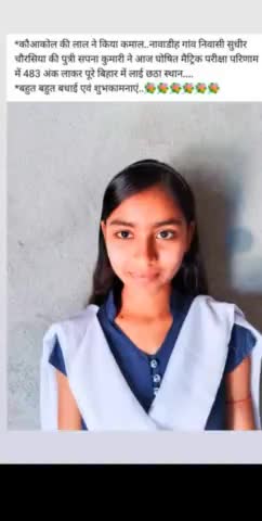 *कौआकोल की लाल ने किया कमाल..नावाडीह गांव निवासी सुधीर चौरसिया की पुत्री सपना कुमारी ने आज घोषित मैट्रिक परीक्षा483 ank