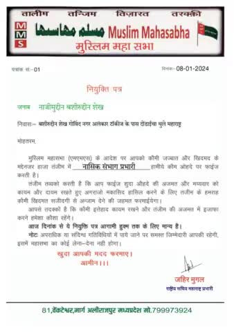 समाज की आवाज को बुलंद करने वाले नाजीमुद्दीन भाई को मेरे द्वारा नासिक डिविजन का प्रभारी नियुक्त किया गया है।