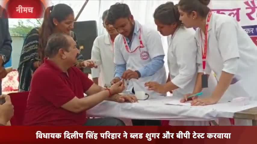 नीमच नगर: विधायक दिलीप सिंह परिहार ने बघाना रेलवे अंडरपास के समीप स्थित शिविर में बीपी शुगर टेस्ट करवाया