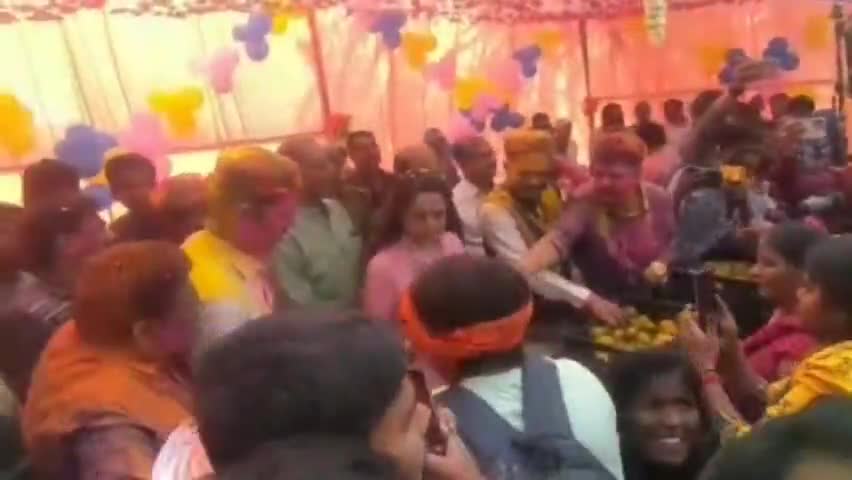 मथुरा: मथुरा की सांसद हेमा मालिनी ने श्रद्धालुओं के साथ खेली अबीर और गुलाल से होली@@#