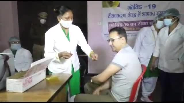 रायपुर: रायपुर पुलिस लाइन सामुदायिक भवन में कलेक्टर, SP और रायपुर संभाग LG में लगवाई कोरोना वैक्सीन