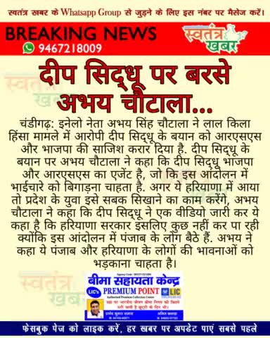 दीप सिद्धू पर बरसे अभय चौटाला... #swatantarkhabar #स्वतंत्रखबर #deepsidhu #abhaychoutala #INLD #KisanAndolan