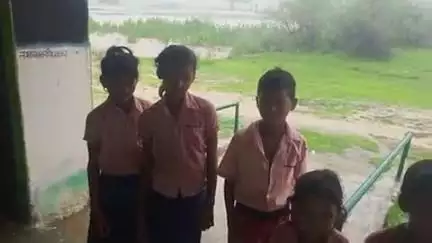 भारी बारिश से स्कूली बच्चों को कठिनाई के सामना करना पड़ रहा है