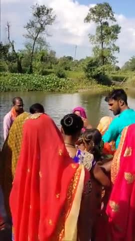 जितिया पवनी के अवसर पर मदना में प्राचीन कमला नदी में कलश में जल भरते श्रधांलू