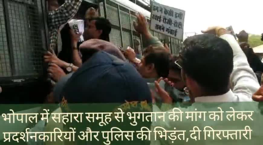 भोपाल में सहारा समूह से भुगतान की मांग को लेकर प्रदर्शनकारियों और पुलिस की भिड़ंत,दी गिरफ्तारी,सरकार के खिलाफ लगे नारे