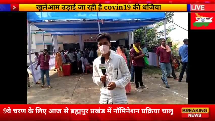# ब्रह्मपुर प्रखंड में 9वे चरण के लिए आज से नामांकन प्रक्रिया चालू। covind19 की खुलेआम उड़ाया जा रहा धज्जियां।