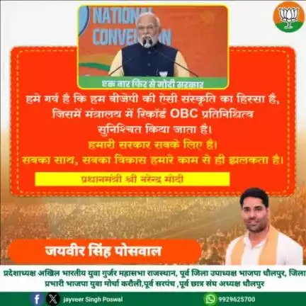 हमे गर्व है कि हम बीजेपी की ऐसी संस्कृति का हिस्सा है, जिसमें मंत्रालय में रिकॉर्ड OBC प्रतिनिधित्व सुनिश्चित किया जाता है। हमारी सरकार सबके लिए है। सबका साथ, सबका विकास हमारे काम से ही झलकता है।