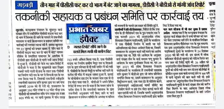 सुरसंड:करड़वाना पंचायत के वार्ड नंबर 03 में तीन माह में पी सी सी सड़क दो भाग वटी