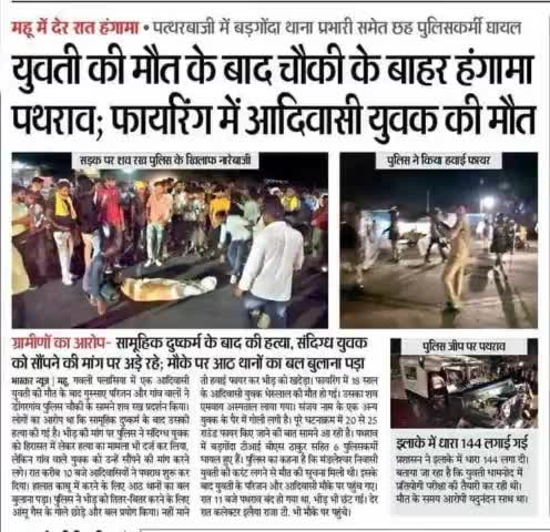 आदिवासी युवती से गैंगरेप, हत्या... विरोध करने पर पुलिस फ़ायरिंग, पुलिस फ़ायरिंग में 18 वर्षीय आदिवासी युवक की भी मौत..