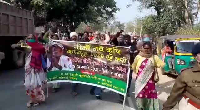 किसान विरोधी काला कानून के खिलाफ झारखंड के खूंटी में आदिवासियों ने विरोध प्रदर्शन किया।