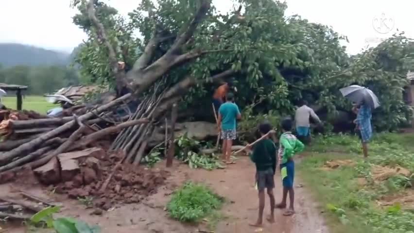 लखनपुर: घर में गिरा पेड़# बाल बाल बची घर की बुढी मां!!