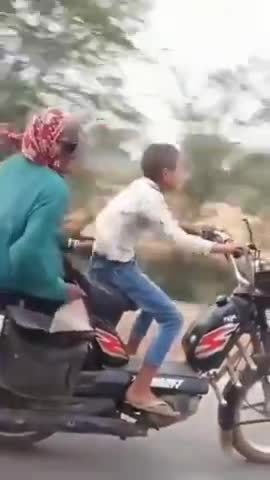 दादी का प्यारा पोता हवा में उड़ रहा।