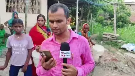 कनीय अभियंता विवेक कुमार से वार्त्तालाप करते पत्रकार जलेश्वर कुमार यादव।