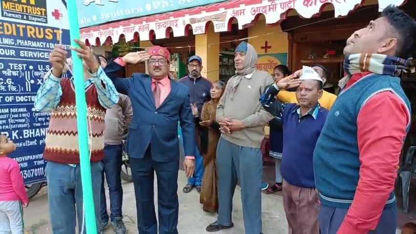 आज गणतंत्र दिवस के शुभ अवसर पर आम आदमी पार्टी कार्यालय नाला में मेरे द्बारा राष्ट्रीय झंडा को सलामी दिया गया।