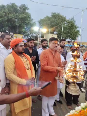 अयोध्या में बाल योगी बाबा रामदास सरजू आरती करते हुए साथ में पूर्व मंत्री पवन पांडे जी