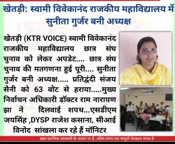 स्वामी विवेकानंद राजकीय महाविद्यालय खेतड़ी में सुनीता गुर्जर अध्यक्ष बनी #khetrinews #news #khetri