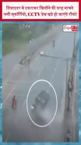 डिवाइडर से टकराकर खिलौने की तरह नाचने लगी स्कॉर्पियो, CCTV देख खड़े हो जाएंगे रौंगटे #डिवाइडर #ScorpioCar