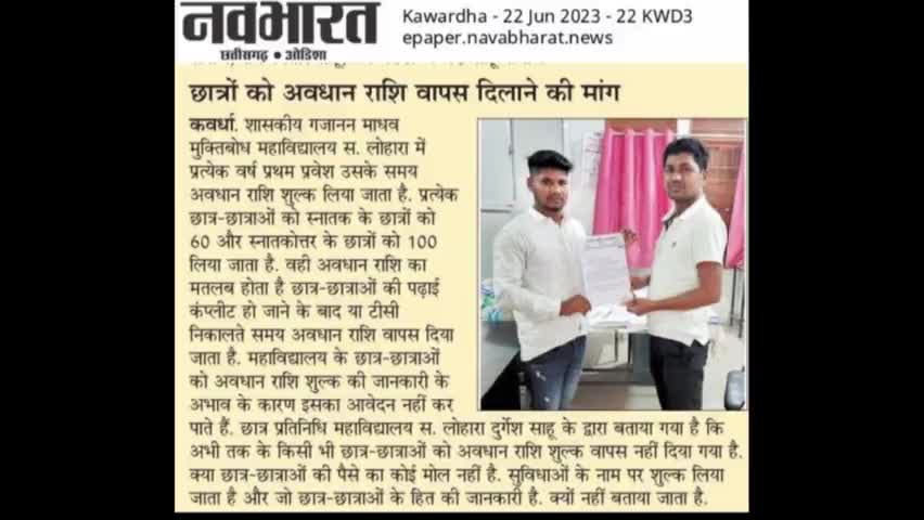 छात्र प्रतिनिधि महाविद्यालय स. लोहारा दुर्गेश साहू के द्वारा लगातार छात्रों की आवाज उठाया जा रहे है। #s_lohara_colege