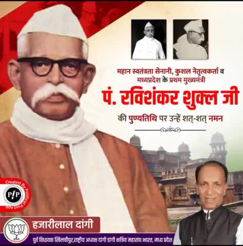 स्वतंत्रता सेनानी और अविभाजित मध्यप्रदेश के प्रथम मुख्यमंत्री पंडित रविशंकर शुक्ल की पुण्यतिथि पर शत शत नमन