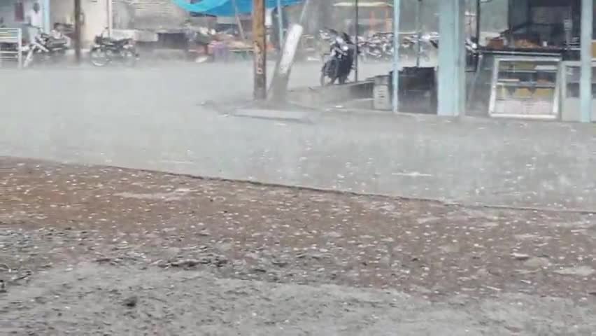 @# गुना जिला मुख्यालय से महज 32 किलोमीटर #@धरनावदा में आसमान से बरसी आफत #@ओलों के रूप में