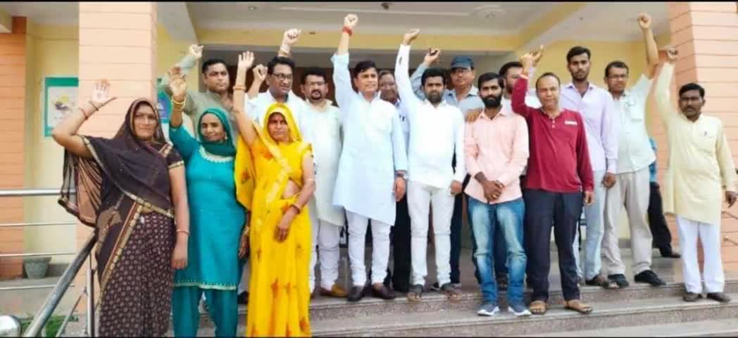 नगरपालिका तारानगर में भाजपा पार्षदों के साथ प्रदर्शन करते हुए है । त्रिलोक रैगर उपनेता प्रतिपक्ष