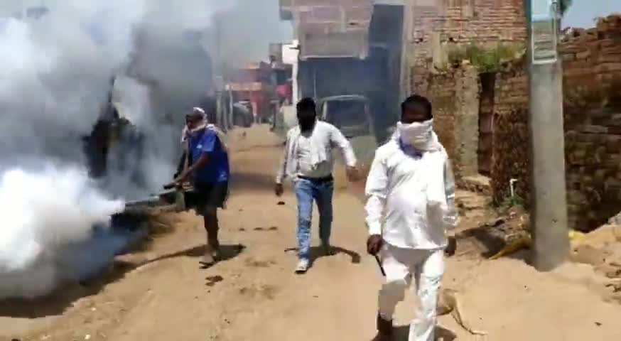 अस्थावां: ओन्दा में कोरोना वायरस के संक्रमण को रोकने के लिए पंचायत के मुखिया सुबोध कुमार के द्वारा कराई गई फॉगिंग