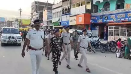 शिवहर: विधानसभा चुनाव को लेकर ट्रेफिक डीएसपी के नेतृत्व में नगर थाना व एसएसबी ने निकाला फ़्लैग मार्च