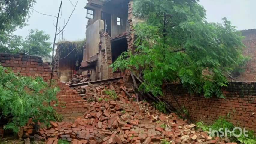 सासनी: सासनी के गांव छौड़ में बरसात के करण गिरा मकान, गनिमत कोई जनहानि नहीं