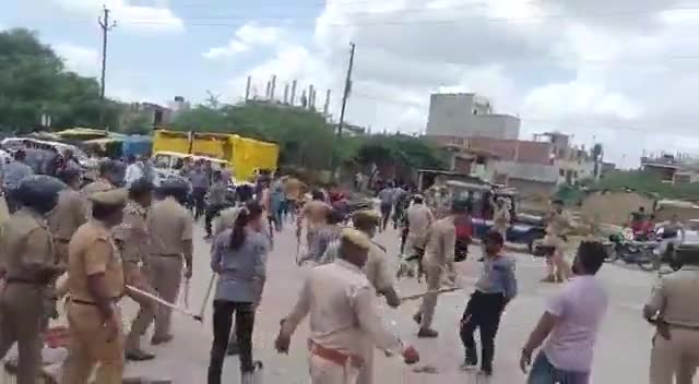 कानपुर: #कानपुर -वेतन की मांग को लेकर प्रदर्शन कर रहे कर्मचारियों पर उत्तर प्रदेश पुलिस ने किया लाठीचार्ज।