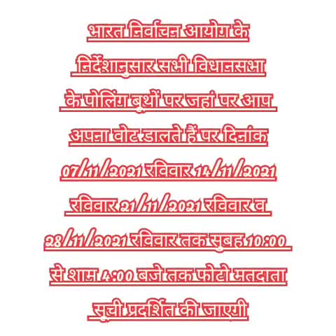 भारत निर्वाचन आयोग 07/11/2021 रविवार से 28/11/2021तक हर रविवार को सुबह10:00 से4:00तक फोटोमतदाता सूची प्रदर्शित की जाएगी