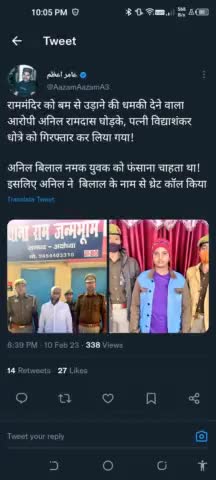 राममंदिर को बम से उड़ाने की धमकी देने वाला आरोपी अनिल रामदास घोड़के, पत्नी विद्याशंकर धोत्रे को गिरफ्तार कर लिया गया!