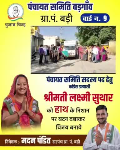 जिसने बुनियाद बनाई देश की राह बढ़ाई 🤚 ग्राम पंचायत बड़ी के विकास की कड़ी से कड़ी मिलाएं लक्ष्मीबाई सुथार को जिताए हाथ