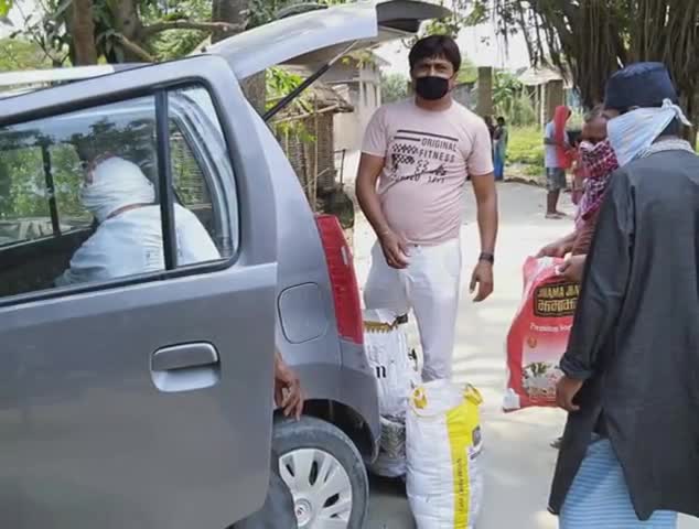 मकेर:फुलवरिया पंचायत के जमलकी गांव में ईद के लिए राहत सामग्री वितरण किये समाजसेवी उज्ज्वल कुमार सिंह.