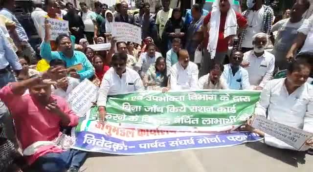 बंद राशन कार्ड लाभार्थियों ने अनुमंडल कार्यालय के मुख्य द्वार पर घंटों रोड जाम कर प्रदर्शन किया गया!