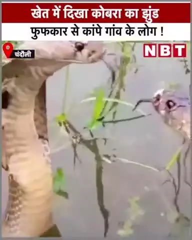 खेत में दिखा कोबरा का झुंड, फुफकार से कांपे गांव के लोग! UP के चंदौली में कोबरा सांपों के झुंड का एक वीडियो सोशल मीडिया पर वायरल हो रहा है. वीडियो में दिख रहा है कि झुंड में से दो सांप फुफकार रहे हैं. दोनों की आवाज लोगों में डर पैदा कर रही