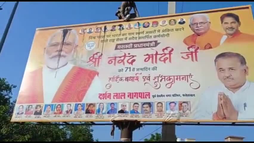 #fatehabad के पपिहा पार्क के बाहर किसानों ने फाड़े प्रधान मंत्री नरेंद्र मोदी के बैनर।