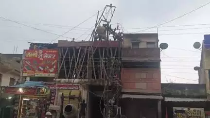 सीतापुर ढलाई करते हुए लिफ्ट मशीन 11000 वोल्ट के तार से जा टकराया। बड़ा हादसा टला। @