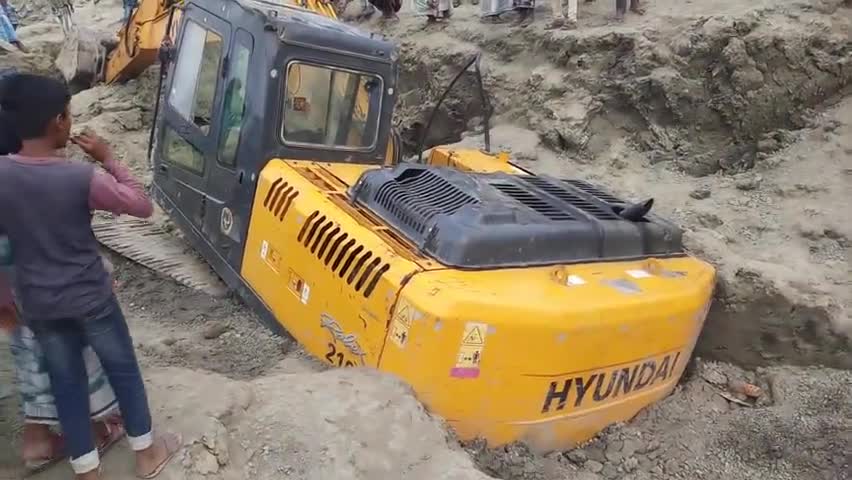 करहमना गांव में खुदाई के दोरान दलदल में फंसा #Hyundai engen