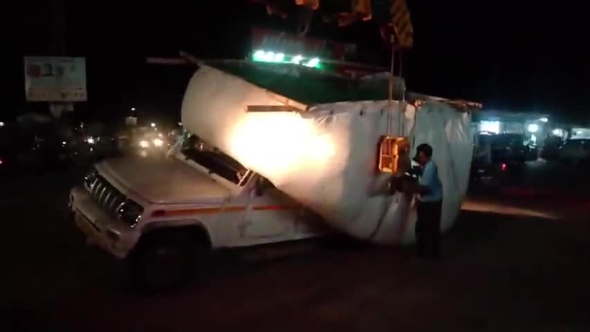सांचोर: मुख्य चौराहा सांचोर पर सड़क के बीच बने गड्ढ़े में धंसी चारे से भरी पिकअप, क्रेन की सहायता से पिकअप को निकाला गया बाहर