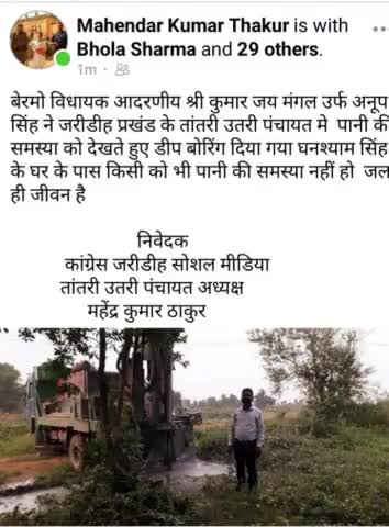 बेरमो विधायक आदरणीय श्री कुमार जय मंगल उर्फ अनूप सिंह ने जरीडीह प्रखंड के तांतरी उतरी पंचायत मे डीप बोरिंग दिया गया